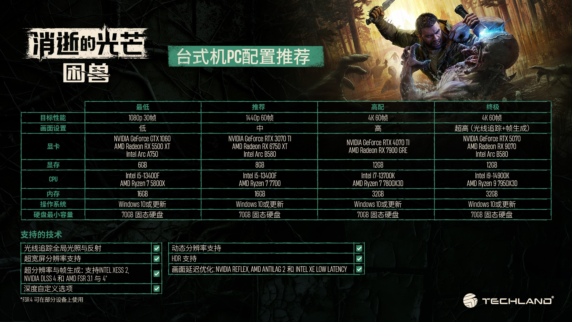 想知道什么样的配置能爽玩困兽?这就来了! 以下就是《消逝的光芒: 困兽》的配置需求。